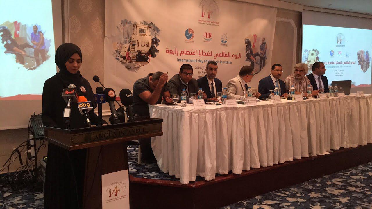 وطالب المشاركون في المؤتمر الدولي حول اليوم العالمي لضحايا اعتصام رابعة، والذى يعقد فى إسطنبول من قانونيين وحقوقيين ومُمثلي منظمات حقوقية محلية ودولية، بوضع خارطة تعريفية للتكييف القانوني لما حدث في فض اعتصام رابعة العدوية والميادين الأخرى، وفتح تحقيق دولي فيما حدث، وتوضيح مفهوم “عدالة ومشروعية الحق في الاعتصام”، مع توصيفٍ لحالة حقوق الإنسان في مصر، ودور القوى الإقليمية فيما حدث.