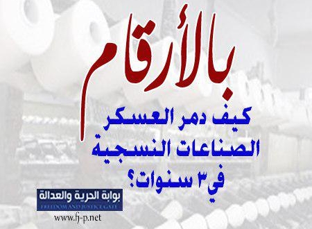 الإنفوجراف التالي يرصد وفق بيانات غرفة الصناعات النسجية كيف انهارت تلك الصناعة العريقة على أيدي العسكر خلال السنوات الثلاث الأخيرة: