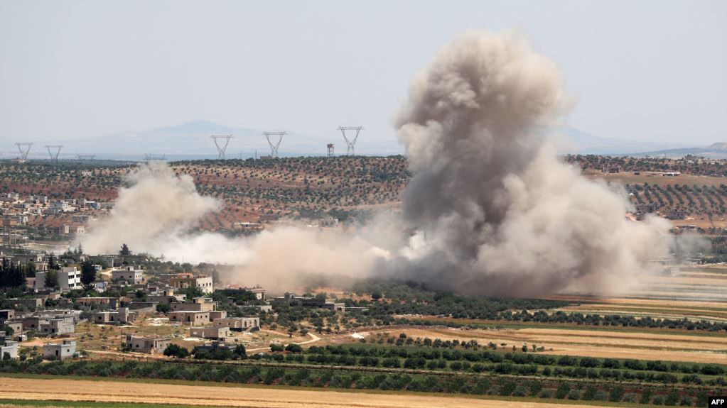 ومنذ أواخر أبريل، تشهد محافظة إدلب وبعض الأجزاء من محافظات حماة وحلب واللاذقية المجاورة التي تسيطر عليها هيئة تحرير الشام (جبهة النصرة سابقا)، غارات مكثفة ينفذها النظام وحليفته روسيا وكذلك اشتباكات دامية بين المتشددين والقوات الموالية للرئيس بشار الأسد.