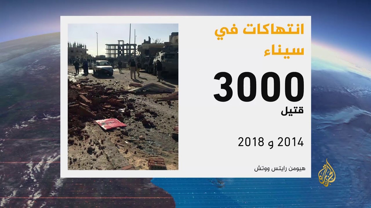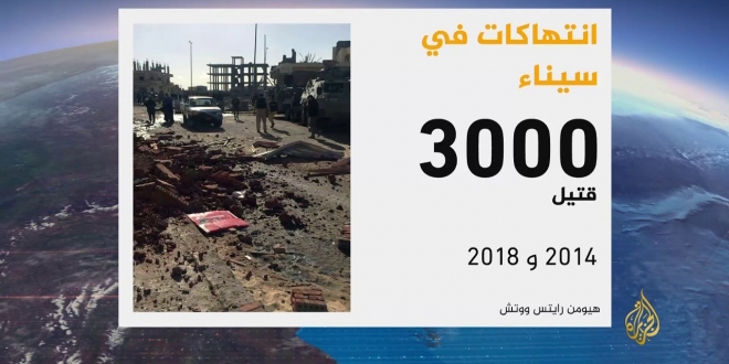 أدانت منظمة هيومن رايتس ووتش في تقرير لها ما أسمتها “جرائم حرب” للجيش المصري وتنظيم الدولة بسيناء، واستند التقرير إلى شهادات خمسين من سكان سيناء ومسئولين محليين ودوليين، كما كشف عن وجود مليشيات مسلحة تعمل لصالح الجيش والشرطة.
