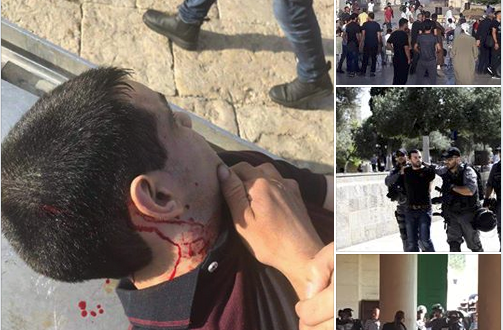 ونقل شهود العيان أن مئات المستوطنين يتقدمهم الحاخام المتطرف يهودا غليك لا يزالون يقتحمون المسجد الأقصى المبارك على أفواج متتابعة، بحماية من قوات الاحتلال التي اعتدت على المعتكفين بالمسجد.