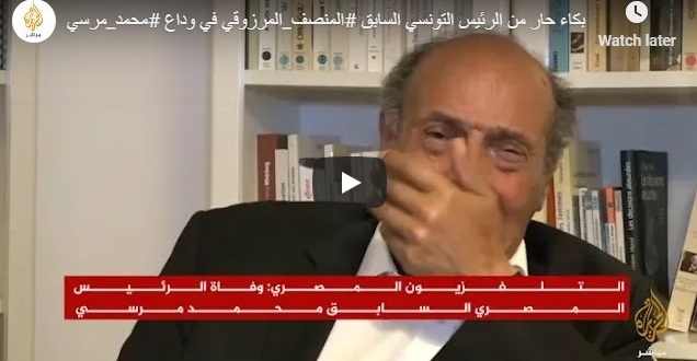 ولم يتمالك المرزوقي نفسه وأجهش بالبكاء الشديد حزنا على وفاة صديقه الرئيس الشهيد محمد مرسي .