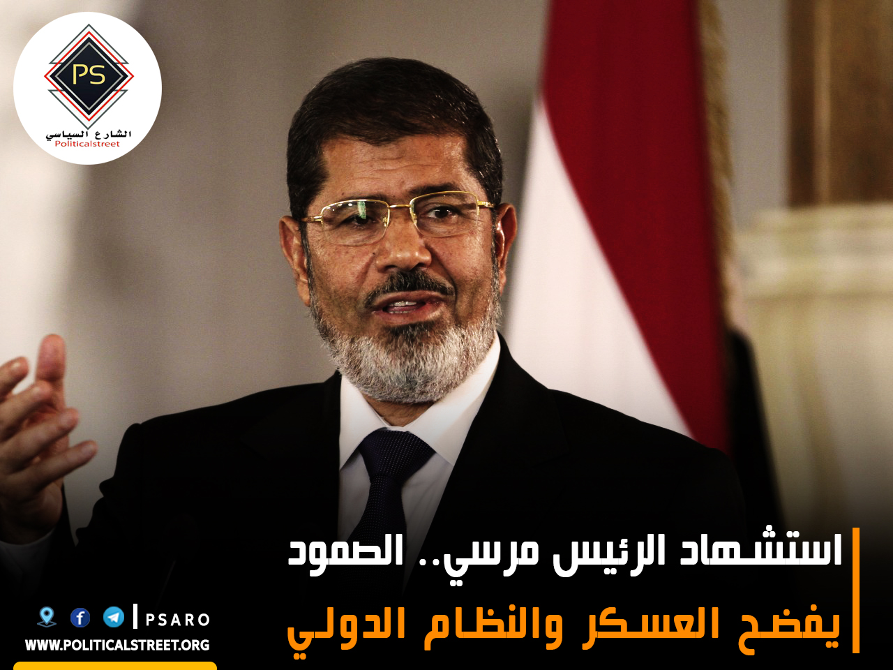 ولفت إلى أن ذلك رغم ممارسة العسكر أبشع الجرائم بحق الرئيس المنتخب إلا أنه "قدم روحه الطاهرة دفاعًا عن مبادئه، وحفاظًا على مصر ومكانتها، ورحل شهيدا عظيما لم يقبل الدنية أبدا في شرعية الشعب المصري, الذي اختاره ويعرف قدره ومكانته, ولن يمضي وقت طويل حتى يتم القصاص".
