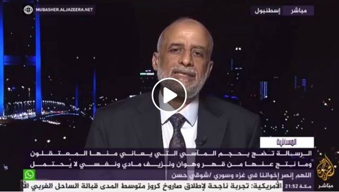 وفيما بتعلق بالحوار مع النظام أعاد الحديث عن مقابلة المهندس خيرت الأخيرة بشأن الحوار بين النظام والإخوان المسلمين في وجود السفير القطري وقال: الإخوان تعاملوا مع كل الوسائل الممكنة والمتاحة من أجل استبيان الأمر ولكن النظام يوصد الأبواب.. وأضاف، يريد النظام المصريين كما قال السيسي انسوا اللي حصل في السنوات السابقة باختصار النظام يريد مصر بلا حرية وبلا كرامة وهو يوصد الباب أمام كل محاولات الاستماع ولا حتى مجرد الالتفات، حاول الإخوان المسلمون واعلنوا مرارا وتكرارا ولكنه يوصد الباب ويحاول الآن أن يصدّر الأزمة إلى أن جماعة الإخوان المسلمين هي الرافضة، وانا أشير تلك بنقطة واحدة فقط أن بشار الأسد قال إن أي مساس بكرسي الحكم في سوريا هو مساس بأمن إسرائيل، وإن أي تغيير العسكريين الانقلابيين في مصر هو مساس بصفقة القرن.