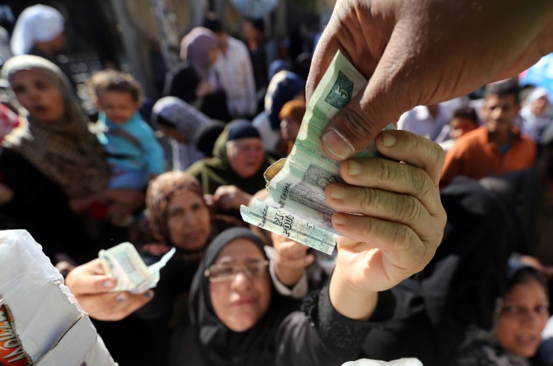 نساء يتجمعن أمام شاحنة لتوزيع المواد الغذائية المدعمة في القاهرة - صورة من أرشيف رويترز