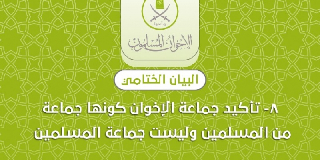 وأكدت الجماعة تمسكها بالثوابت والمنهج الوسطي والسلمي الرافض لكل أشكال العنف والتطرف فكرًا وسلوكًا، أيًّا كان مصدره أو مبرره.