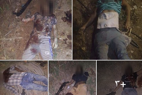 وكالعادة زعم بيان داخلية الانقلاب أن الضحايا الذى سقطوا ولم تعلن عن أسمائهم، كانوا يخططون لتنفيذ عمليات عدائية ضد القوات المسلحة والشرطة، وأنهم وجدوا فى مكان مصرعهم) 9 بنادق آلية، 3 بنادق خرطوش، 2 عبوة ناسفة، 1 حزام ناسف).