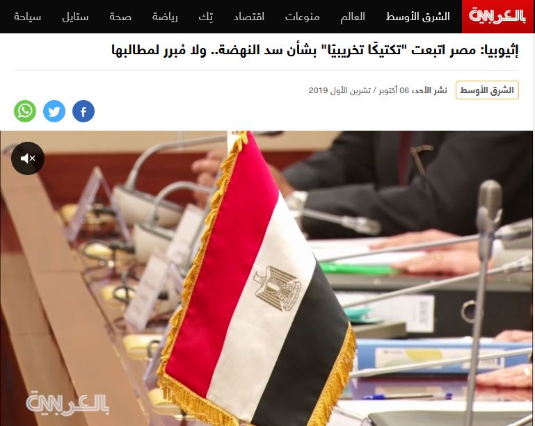 نشر موقع قناة سي إن إن “CNN” بالعربي عنوانًا هجوميًّا من الإثيوبيين على زعيم الانقلاب ولجنته المفاوضة، فقالت “إثيوبيا: “مصر اتبعت تكتيكًا تخريبيًا بشأن سد النهضة ولا مُبرر لمطالبها”، وهذا العنوان ومتنه الأشد قسوة، يأتي مقابل التصريحات الوردية التي نقلتها صحف الانقلاب والمواقع الموالية من دول الثورة المضادة، ومنها ما قالته “الوطن”: “إثيوبيا: مستعدون لحل أي خلافات مع مصر والسودان بشأن سد النهضة”، وقالت “اليوم السابع”: “إثيوبيا تنفى وصول مفاوضات سد النهضة لطريق مسدود: مستعدون لحل أى خلاف”، أما عنوان موقع “العين” الإماراتي فكان “إثيوبيا: مستعدون لحل أي خلافات حول سد النهضة بالتشاور مع مصر والسودان”.