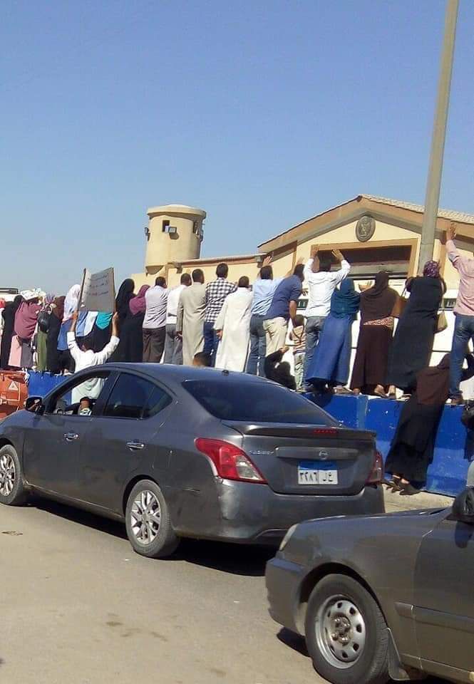 تداول نشطاء على مواقع التواصل الاجتماعي صور تظهر أهالي المعتقلين بسجن طرة على ذمة القضية 123وهم يعتلون السور أمام سجن طرة لرؤية ذويهم.