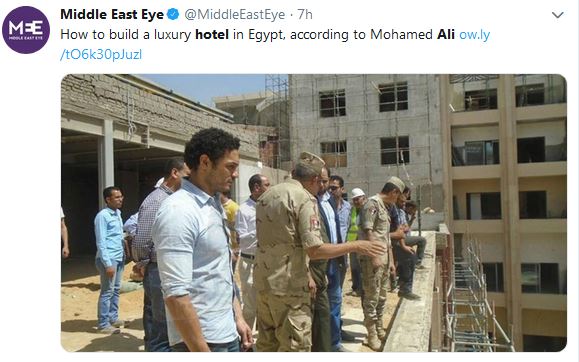 وواصل موقع "ميدل إيست آي" البريطاني نشر أجزاء جديدة من حواره مع المقاول محمد علي، كانت الفقرة السابقة جزءًا من حواره عن بناء فندق "Triumph Luxury Hotel" في القاهرة الجديدة في 2017، كشف عن حجم المحسوبيات والديون التي تغذي بناء الفيلات والقصور والفنادق المصممة للجيش.