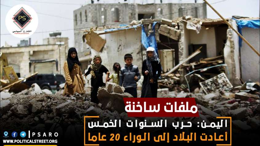ضمن بحوث ودراسات موقع "الشارع السياسي"، تناولت دراسة بعنوان "اليمن: حرب السنوات الخمس أعادت البلاد إلى الوراء 20 عاما"، الآثار التدميرية التي نتجت عن الانقلاب الحوثي في اليمن وتدخل التحالف السعودي الإماراتي في الشؤون اليمنية بتفتيت المفتت.