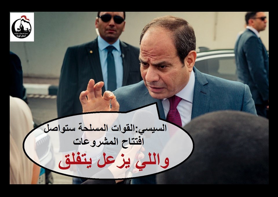 تعليقات النشطاء جاءت تالية لعرض فردي معتاد من السفيه السيسي، ظهر فيه اليوم متوعدًا الشعب بمزيد من المشروعات للقوات المسلحة، مضيفًا: “اللي يزعل يتفلق”، مبديا استعداده لإغراق الشعب في مشاريعه الفاشلة للمساهمة والمشاركة فيها.