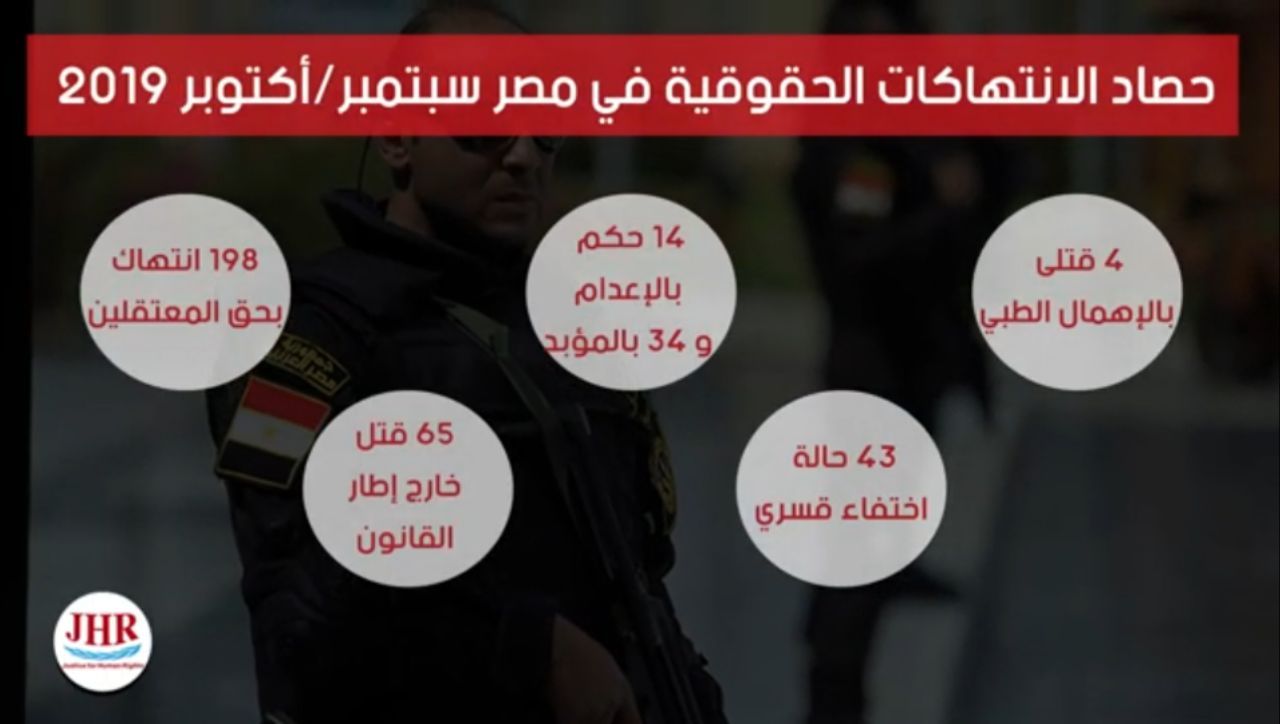 رصدت منظمة عدالة لحقوق الإنسان، في حصادها عن الانتهاكات التي ارتكبتها عصابة العسكر في مصر خلال شهري سبتمبر وأكتوبر 2019، نحو 4688 انتهاكًا.