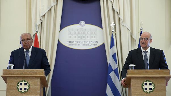 والتقى، الأحد، وزير الخارجية اليوناني نيكوس ديندياس، وزير خارجية الانقلاب سامح شكري في القاهرة، لبحث ما أعلنه رئيس الوزراء اليوناني كيرياكوس ميتسوتاكيس، بأن أثينا ستطلب الدعم من حلف شمال الأطلسي، خلال قمته المقررة هذا الأسبوع في لندن، بعد توقيع أنقرة اتفاقًا عسكريًّا مع حكومة الوفاق الليبية.
