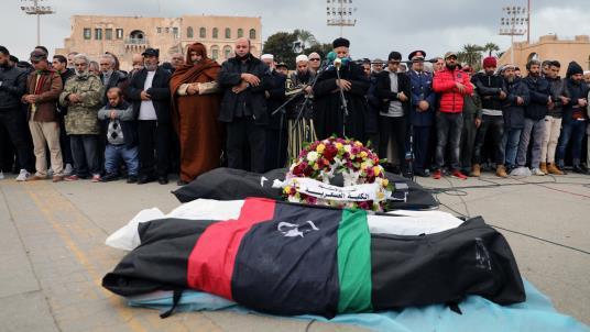 ومساء السبت، قصف طيران أجنبي (إماراتي) داعم لقوات اللواء المتقاعد خليفة حفتر، مقر الكلية العسكرية في طرابلس؛ ما أودى بحياة ثلاثين طالبًا.