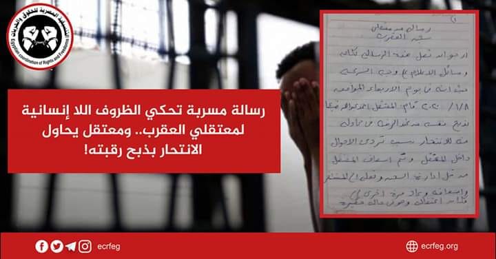 وثقت "التنسيقية المصرية للحقوق والحريات" رسالة وصلتها من المعتقلين بسجن العقرب تكشف عن تصاعد الانتهاكات ومحاولة أحد المعتقلين الانتحار نتيجة ما يحدث ضدهم من جرائم وقتل ممنهج بالبطيء.