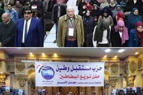 في إطار سعي نظام السيسي لتحسين وجه سياسييه من أحزابٍ ورقيةٍ تنتمي لكلمة “وطن” اسمًا وتُذل أبناء الوطن جهرًا، أقام حزبا “مستقبل وطن” و”حماة وطن” حفلات ودعاية تعادل أضعاف ثمن البطاطين التي قاموا بتوزيعها على الفقراء في عدد من محافظات الجمهورية.