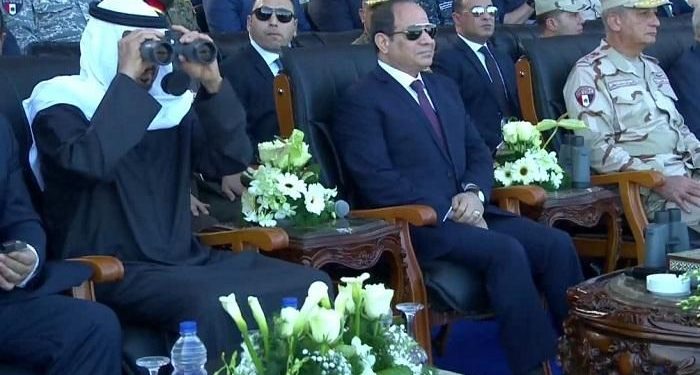 وفي سياق منفصل، افتتح عبد الفتاح السيسي، قائد الانقلاب العسكري، أمس، قاعدة برنيس العسكرية، وتقع القاعدة على ساحل البحر الأحمر بالقرب من الحدود الدولية الجنوبية شرق مدينة أسوان، وتبلغ مساحتها 150 ألف فدان وتضم قاعدة بحرية وأخرى جوية ومستشفى عسكرية، ورفع السيسي علم القوات المسلحة على القاعدة العسكرية إيذانا بافتتاحها، كما شهد عرضا مباشرا للتدريب البحري ضمن المناورة قادر 2020.