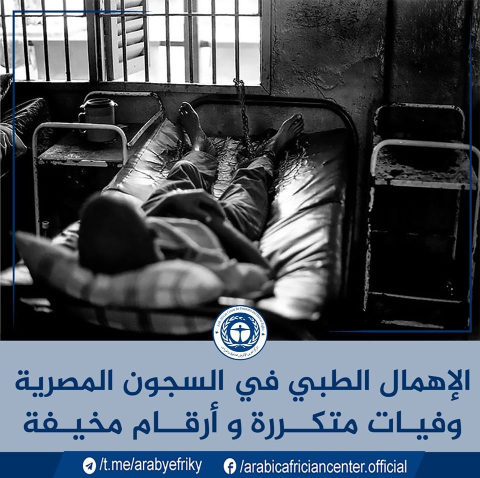 وطالب المركز بضرورة وقف جريمة القتل البطيء بالإهمال الطبي، حيث رصد ارتفاع حالات الوفاة داخل السجون إلى 971 معتقلا، منهم 677 نتيجة الإهمال الطبي المتعمد و136 نتيجة التعذيب داخل مقار الاحتجاز .