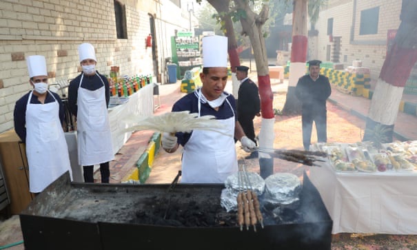 وعلقت الصحيفة أنه أمام هذه التقارير دعت “الحكومة” مجموعة مختارة من الصحفيين للقيام بجولة في نفس مجمع سجون القاهرة، وهو موقع مرتبط بالسجن الجماعي والتعذيب، حيث عُرض عليهم طبّاخون يميلون بعناية إلى حفلة شواء في الهواء الطلق، ويلعب المحتجزون كرة القدم في ملاعب جديدة، في محاولة لتقديم صورة مختلفة عن ظروف السجن.