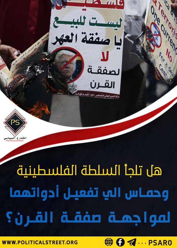 وأشار التحليل السياسي إلى أنه بعد إعلان الرئيس الأمريكي دونالد ترامب وبجواره رئيس الوزراء الإسرائيلي بنيامين نتنياهو، يوم الثلاثاء 28 يناير 2020، عن الشق السياسي لخطة السلام الأمريكية في الشرق الأوسط، والمعروفة إعلاميًّا بـ "صفقة القرن". ثار الحديث عن الأدوات الفعالة التي تملكها كل من السلطة الفلسطينية وحماس لمواجهة تلك الصفقة.
