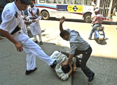 فى الصباح الباكر من اليوم التالى استيقظوا على أصوات خبط وضرب فى الزنازين المجاورة، حيث كانت زنزانته آخر الممر، وأسرع بعض من هم خبراء فى الاعتقالات بارتداء أكبر قدر من الملابس، وبعدها بقليل قام جنود الأمن المركزى باقتحام زنزانته، وأمروه بالخروج إلى الممر، فوجد عساكر الأمن محملين بالعصى والسياط التى انهالت عليهم فى كل مواضع أجسادهم.