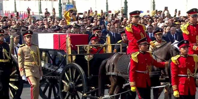 جنازة عسكرية مهيبة للرئيس المخلوع محمد حسني مبارك، تقدَّمها عبد الفتاح السيسي قائد الانقلاب بنفسه، بالإضافة إلى وفد رفيع أريد به المجيء لإيصال رسائل متعددة.