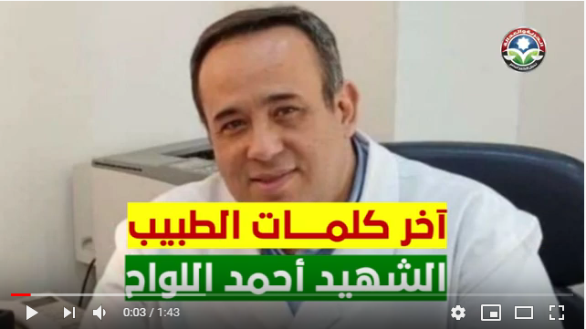 شيّع أفراد قليلون الشهيد الطبيب أحمد اللواح، أول ضحايا فيروس كورونا القاتل بين الجيش الأبيض العامل في المجال الطبي لمكافحة المرض القاتل.