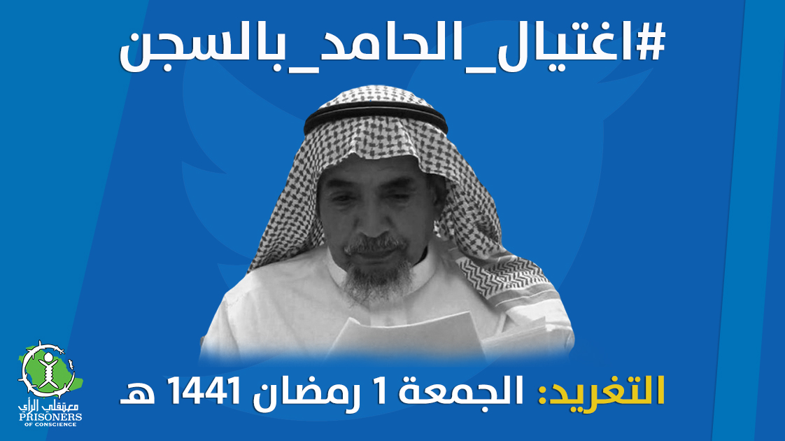 أطلق حساب “معتقلي الرأي” دعوة لجميع الأحرار للتغريد على مدار اليوم الجمعة 1 رمضان 1441 (24 أبريل 2020) بوسم #اغتيال_الحامد_بالسجن؛ وذلك لتسليط الضوء على جريمة الإهمال الطبي المتعمد التي أودت بحياة الحقوقي السعودي عبد الله الحامد “أبي بلال” في السجن، وللمطالبة بمحاسبة المسئولين عن وفاته.