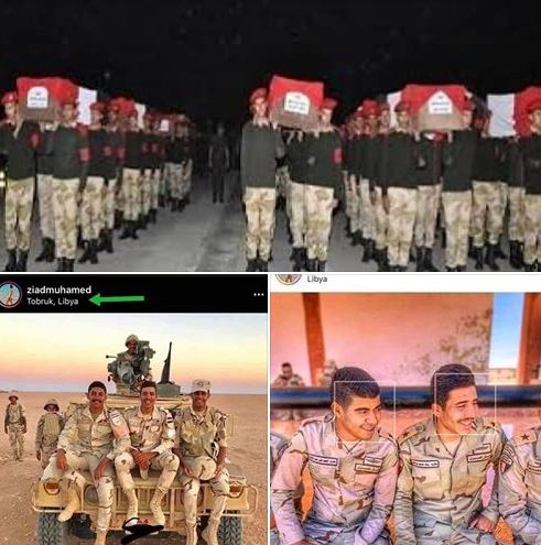 وتساءل مراقبون إن كانت وجهة موتهم صحيحة بالموت في سيناء، بحسب تصريحات المتحدث العسكري، أم في ليبيا. ورجّح الاختيار الثاني ما نشرته صفحة “عملية بركان الغضب”، التابعة للجيش الليبي التابع لحكومة الوفاق، صورًا لعدد من الجنود المصريين الذين تم إرسالهم إلى مدينة طبرق لمساندة الانقلابي خليفة حفتر في حربه ضد حكومة طرابلس (الوفاق).