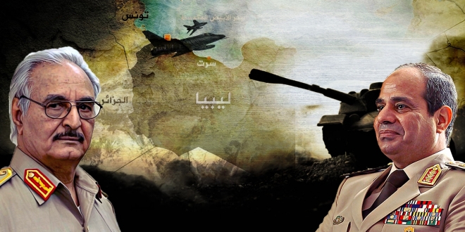 وتبرر سلطات الانقلاب بمصر تدخلها في ليبيا بمقتضيات الأمن القومي، لكنّ محللين يرون أن الأسباب الحقيقية فى دعم الانقلابي حفتر، هو الطمع في ثروات ليبيا النفطية، حيث يسعى السفيه السيسي إلى إيصال نظام حفتر إلى حكم ليبيا مقابل منح مصر توريدات الطاقة، إضافة إلى أطماع السفيه السيسي في مشاريع التنمية والبنية التحتية وتغطية السوق الليبية بالعمال المصريين.