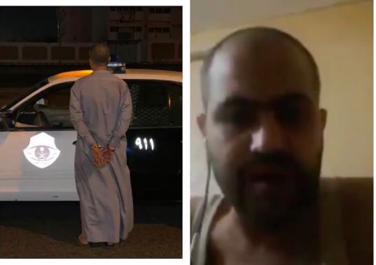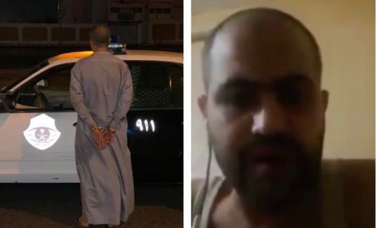 وأظهر الفيديو المصري “حسام عادل”، المقيم بجدة، أثناء جره على الأرض سحبا من قدميه من شخصين، ويداه مصفّدتان وهو يستغيث باكيا “والله ما أقصد .. والله في بالي نقف قدام سفارتنا وينزلونا زي ما حصل في الكويت”، فيرد عليهم أحدهم: “عشان تتوب”.
