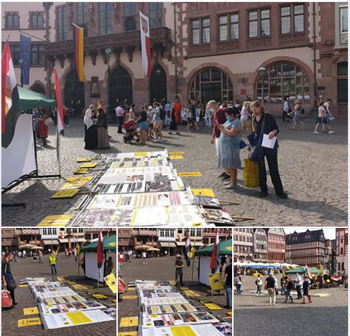 وفى فرانكفورت بألمانيا نظم الائتلاف المصري الألماني لدعم الديمقراطية عضو "الائتلاف العالمي للمصريين بالخارج" معرضا للصور بميدان رموبرج الكبير بمدينة فرانكفورت، إحياء للذكرى السابعة لمذبحة رابعة، طالبوا بالقصاص لدماء الأبرياء الرافضين للانقلاب في رابعة والنهضة وميادين مصر كلها.