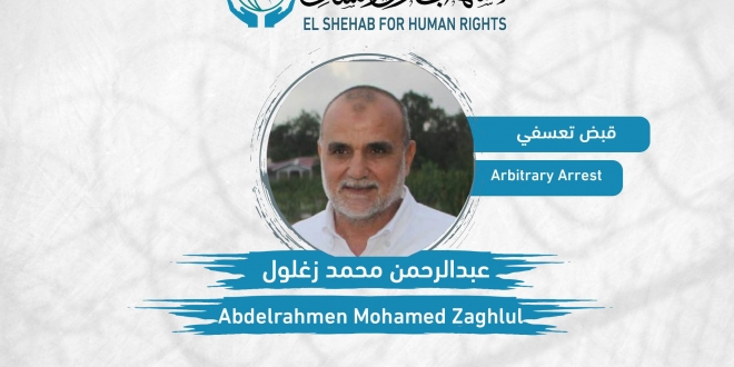 جدد مركز الشهاب لحقوق الإنسان المطالبة بوقف جرائم الاعتقال التعسفي للمواطنين وإطلاق سراح جميع المعتقلين واحترام حقوق الإنسان ووقف نزيف إهدار القانون حفاظا على سلامة المجتمع، ووثق المركز جريمة اعتقال عبدالرحمن محمد زغلول بمحافظة السويس، فجر أمس الأربعاء 28 أكتوبر 2020 من المنصورة، أثناء زيارة أهله بالدقهلية، واقتياده لجهة جهولة حتى الآن دون ذكر الأسباب.