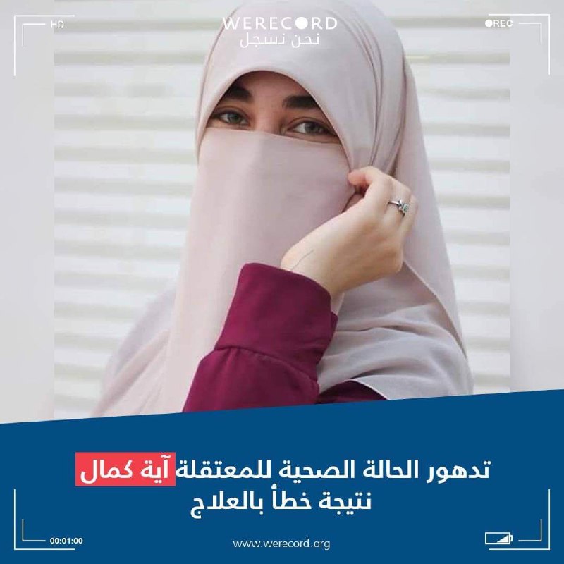 وطالب فريق "نحن نسجل" الحقوقي بوقف مظاهر الإهمال الطبي المتعمد من قِبَل إدارة سجن القناطر بحق المعتقلة آية كمال، حيث تدهورت حالتها الصحية بشكل ملحوظ نتيجة إعطائها أدوية خطأ أثرت على جهاز المناعة وغيره بسبب عدم وجود طبيب مختص داخل مستشفى السجن ما نتج عنه صرف مسكنات وأدوية تحتوي على الكورتيزون بشكل مرتفع.
