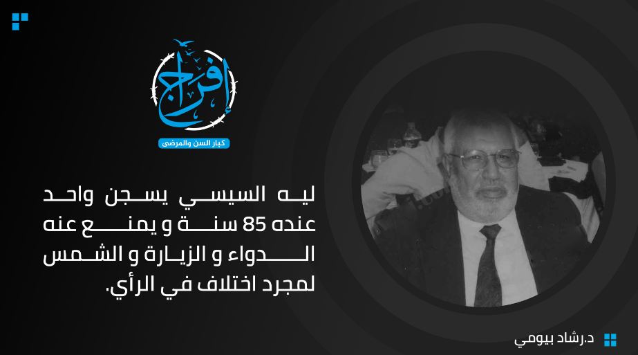 وقالت الحملة: "اختلافك في الرأي معاه لا يعطيك الحق أبدا إنك تسجنه وتمنع عنه الهواء والدواء.. ليه واحد زي دكتور رشاد البيومي عمره 85 سنة محبوس بدون تهمة واضحة! شاركونا في حملة إفراج للمطالبة بالإفراج عن كبار السن والمرضى في سجون السيسي".