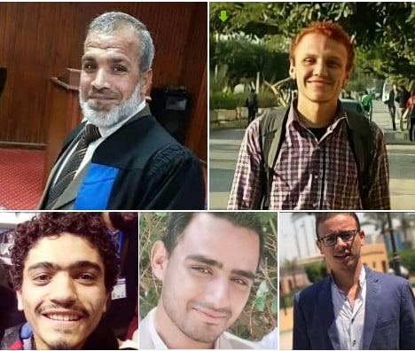 والضحايا الأربع هم: مصطفى المحلاوي ومسعود محسن والسيد رخا وأحمد صفوت، حيث تم عرضهم على النيابة بمزاعم لا صلة لهم بها بينها الانضمام لجماعة محظورة وحيازة منشورات.