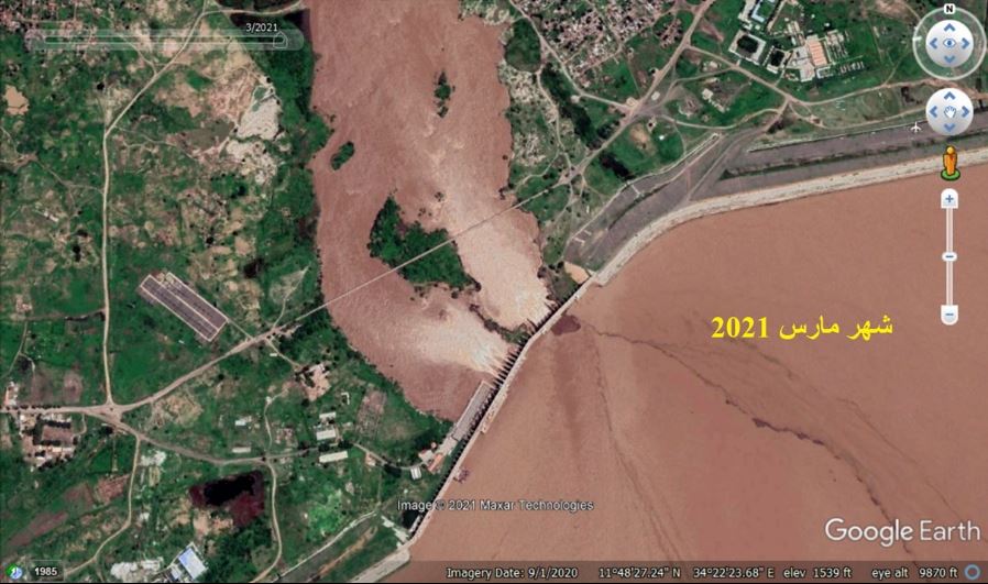 وتساءل: "هل فتحت إثيوبيا البرابخ الأربعة السفلية"؟ وأرفق فيديو يوضح تطور بحيرة سد الرصيورص في الفترة بين 13 فبراير حتى 10 مارس؛ حيث تظهر مياه بحيرة تخزين سد الرصيورص صافية بلا أي طمي. فيما الصورة الثانية من جوجل إيرث هي الأحدث وربما تم تصويرها بعد يوم 10 مارس وتوضح حجم الطمي الكبير بالبحيرة.