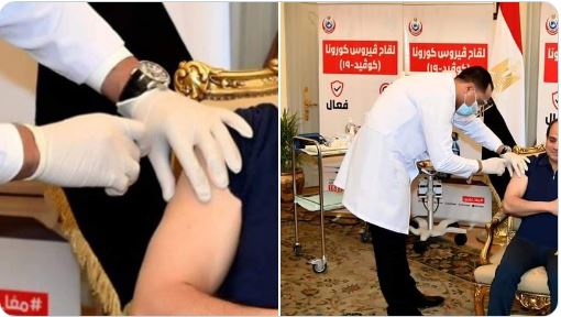 وقال عمر الشاذلي عبر @OmarElshazly92: "ظهر السيسي بالأمس في صورة أثناء تناوله لعقار كورونا . وبعد تدقيق في الصورة من قبل وكالات الأنباء تبين أن الطبيب الذي يعطي اللقاح للسيسي لم يكن بيده حقنة. وقامت وزارة الصحة بحذف الصورة من موقعها بعد اكتشاف الفضيحة.. السيسي يعلم أن العقار الصيني مضر ولن يأخذه، هو فقط للشعب الفقير".