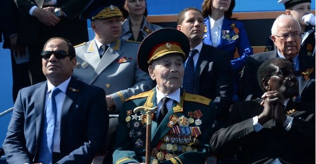 الصورة التي اختارها كبلان هي لقائد الانقلاب عبد الفتاح السيسي وهو يشهد عرضا عسكري في موسكو إلى جوار عسكريين وحكاما ديكتاتوريين من إفريقيا في 9 مايو 2015.