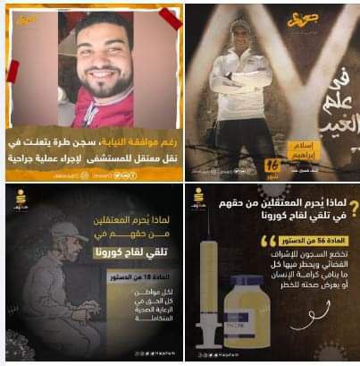 وواصلت حملة "حقهم" الشعبية للتضامن مع المعتقلين و المختفين قسريا مطالبيتها برفع الظلم الواقع عن جميع المعتقلين واستنكرت حرمانهم من حقهم في تلقي لقاح كورونا.