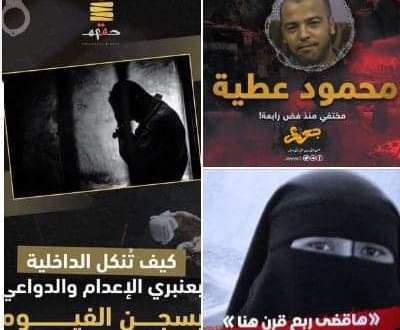 من ناحية أخرى رصدت حملة "حقهم" للتضامن مع المعتقلين والمختفين قسريا أبرز الانتهاكات لعنبر الإعدام والدواعي بسجن الفيوم عقب زيارة وفد حقوق الإنسان. وكشفت الحملة من خلال "إنفوجراف" صادر عنها أبرز الانتهاكات التي يشرف على تنفيذها المقدم أمير صقر رئيس مباحث السجن والعقيد حسام عبدالتواب مفتش مباحث السجن، من بينها حفلات تعذيب المعتقلين بالعنبرين، وحرمان المعتقلين من توفير العلاج بمستشفى السجن، كما يتم منع ذويهم من من توفير العلاج لهم خلال الزيارات التي تتم والمعتقل مقيد بشكل خلفي ضمن مسلسل الانتهاكات والتنكيل بما يخالف القانون.