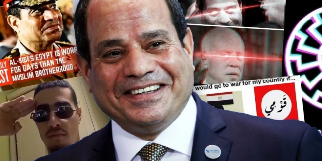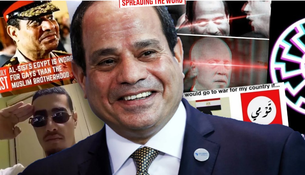وتابع التقرير"الواقع أن جمالية قنوات تيليجرام وصفحات الفيس بوك هذه تحاكي حركة النازيين الجدد الحديثة على الإنترنت، بما في ذلك استخدام رسومات سينث بوب، وميمات اليمين المنقلب، وصور الرايخ الثالث وأشرطة الفيديو. وأحد هذه الميمات الشائعة يكرم السيسي بمجموعة من العيون الليزرية، وقد اقترنت هذه الصورة مؤخرا بنسخة جديدة من عين بالليزر للرئيس التونسي قيس سعيد في إشارة إلى انقلابه الدستوري، ويقرأ المنشور الذي يقارن بين الاثنين كقائمة اختيار معتمدة، تعليق مؤقت للدستور وإعفاء رئيس الوزراء من مهامه وتعطيل البرلمان والرسالة هنا واضحة: لعبة تعرف على اللعبة".