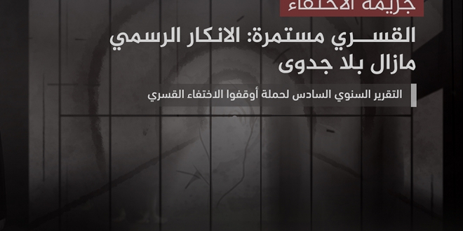 وقالت الحملة في تقريرها السنوي الصادر عنها بعنوان "جريمة الإخفاء القسري مستمرة، الإنكار الرسمي مازال بلا جدوى" تَلاحَظَ وجود تحولات خطيرة في ملف السجناء والمعتقلين، سواء كانوا سياسيين أو متهمين في قضايا جنائية، امتدت هذه الممارسات إلى معاقبة أسرهم حال طلبهم معرفة أماكن احتجاز ذويهم".