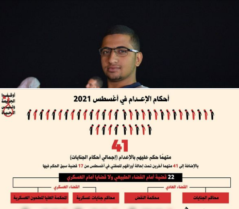 وأشارت المبادرة إلى أنه “لم يتم رصد تنفيذ أي أحكام للإعدامات خلال شهر أغسطس سواء من المحاكم المدنية أو العسكرية كما أن أحكام الإعدامات الصادرة في أغسطس اقتصرت على محاكم الجنايات وحدها”.