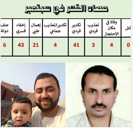 حصاد القهر.. 122 انتهاكا بسبتمبر واستمرار إخفاء “النجار” وتدهور صحة “هديب” بمحبسه