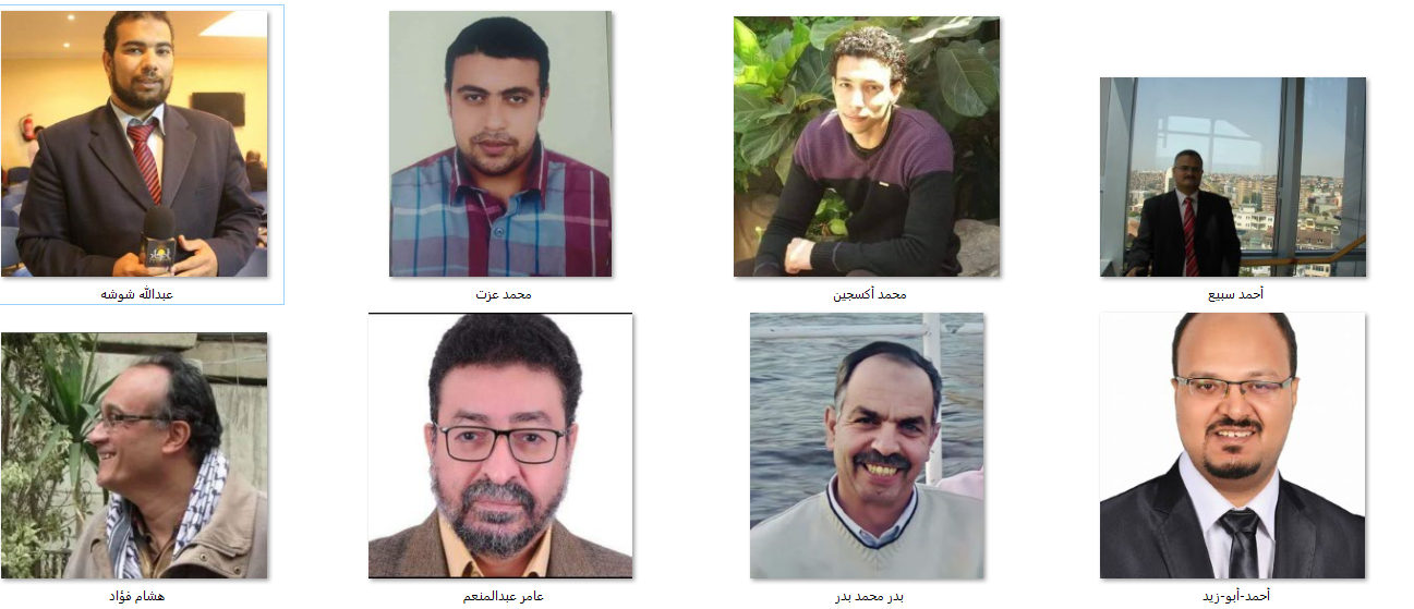 وهم الصحفيون بدر محمد بدر، أحمد سبيع، أحمد أبو زيد، عامر عبد المنعم، هشام فؤاد، عبد الله شوشة، حسام مؤنس، والمدون محمد أكسجين.