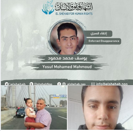 وتواصل قوات أمن الانقلاب بالقاهرة جريمة إخفاء الطالب يوسف محمد محمود أمين من المرج منذ اعتقاله يوم 3 نوفمبر 2019 واقتياده لجهة مجهولة، حيث لم يستدل أهله على مكانه حتى الآن.
