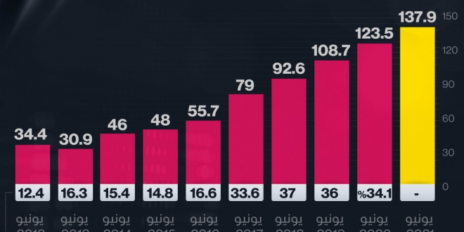 ففي يونيو الماضي، كشف البنك المركزي أن إجمالي ديون مصر الخارجية بلغ 137 مليارا و850 مليون دولار، مقارنة بـ123 مليار و490 مليون دولار في يونيو 2020.