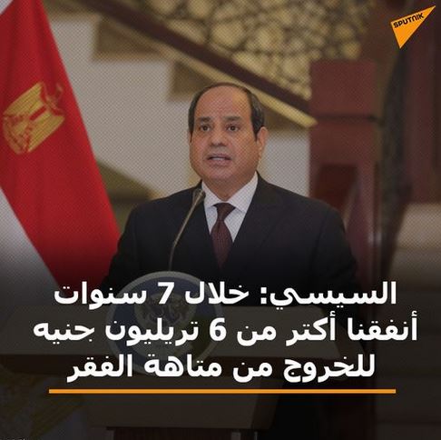 وقال السفيه السيسي إن "الدولة المصرية أنفقت أكثر من 6 تريليون جنيه للخروج من ما وصفه بـمتاهة الفقر، وذلك أثناء جلسة نقاشية تحت عنوان "تجارب تنموية في مواجهة الفقر"، عقدت ضمن فعاليات منتدى شباب العالم، المقام في شرم الشيخ.